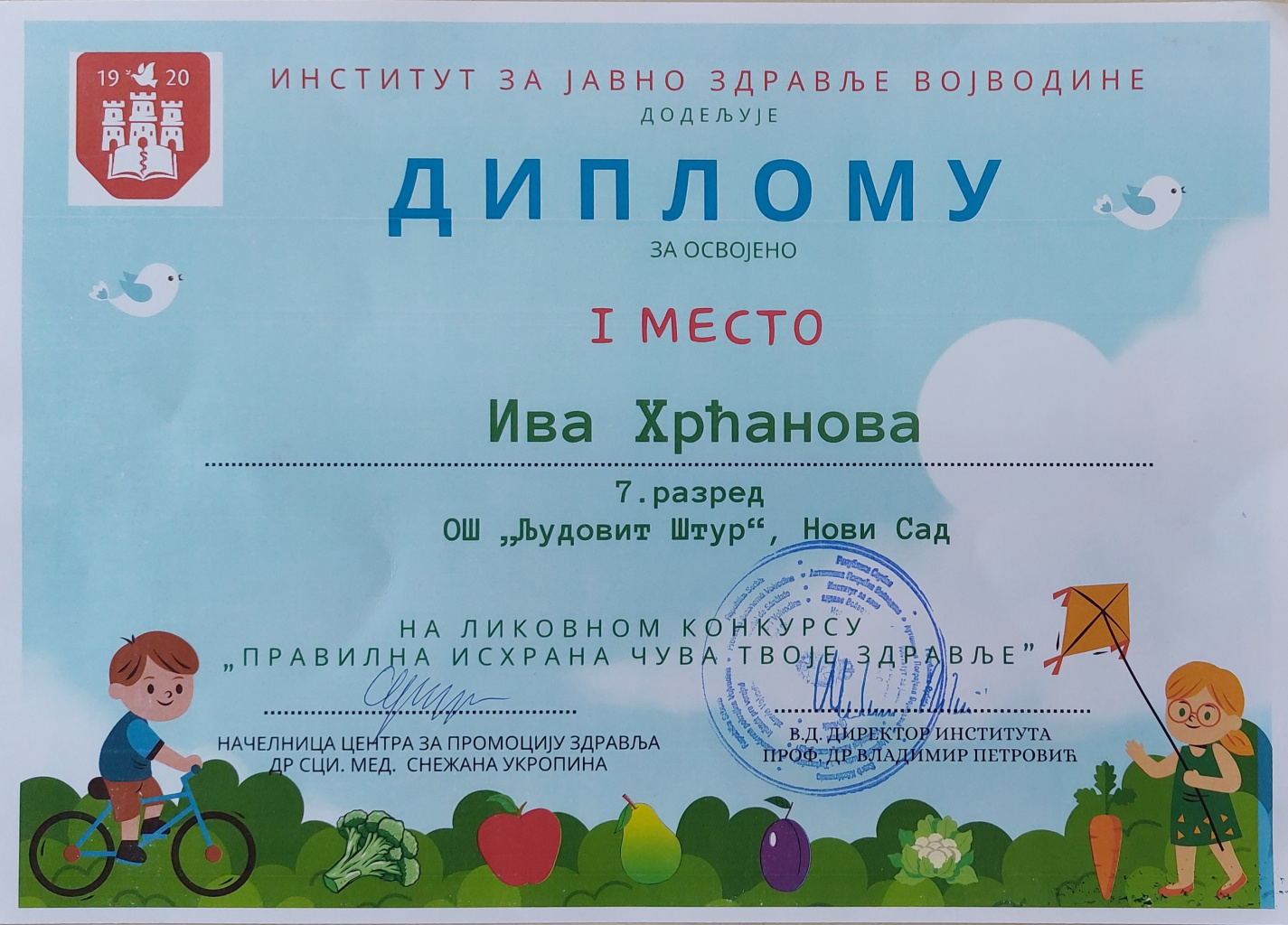 На ликовном конкурсу, који је организовао Институт за јавно здравље Војводине на тему ,,Правилна исхрана чува твоје здравље“ учествовали са и ученици наше школе.